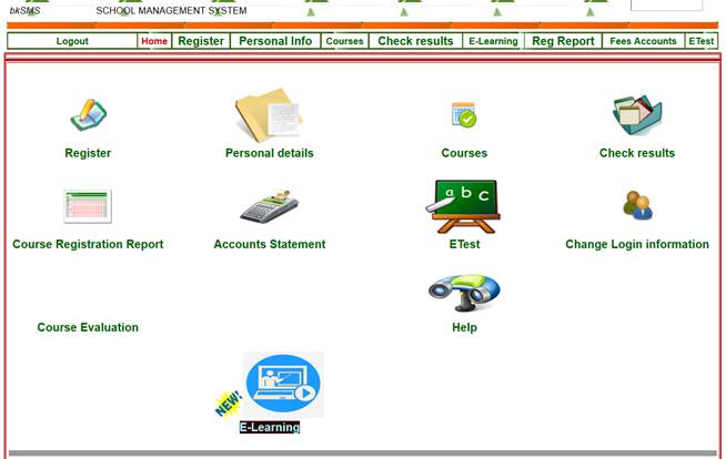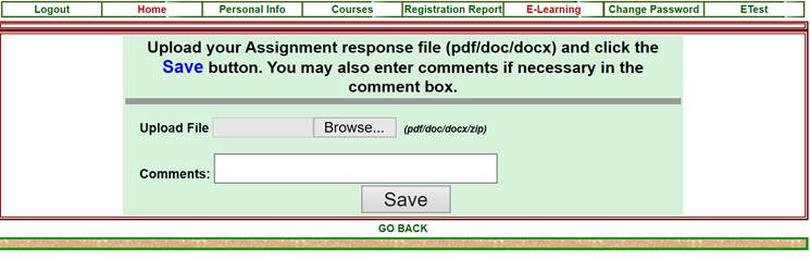 displayed after clicking the E-Learning link in Figure 1.
