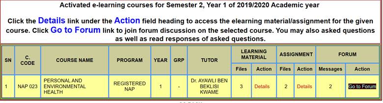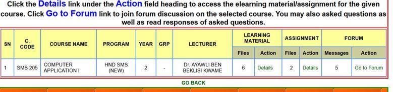 among the list if no e-learning material is uploaded the respective lecturer.)