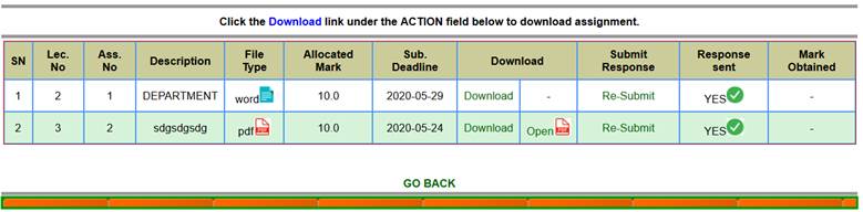 is displayed indicating the list of the assignments. To access the assignment,